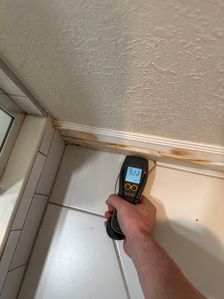 - Shower Walls: Look for signs of water damage, such as peeling paint, water stains, warped walls, baseboards, and discoloration.