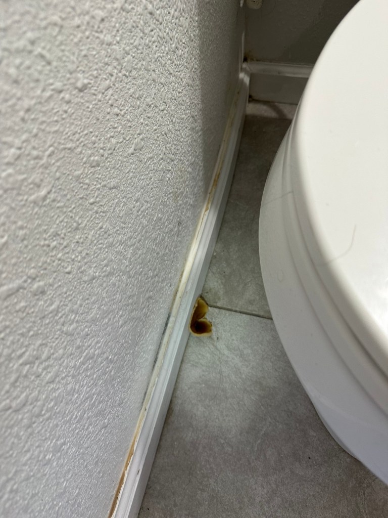 - Toilet: Inspect around and behind the toilet, and check inside the toilet tank for discoloration.