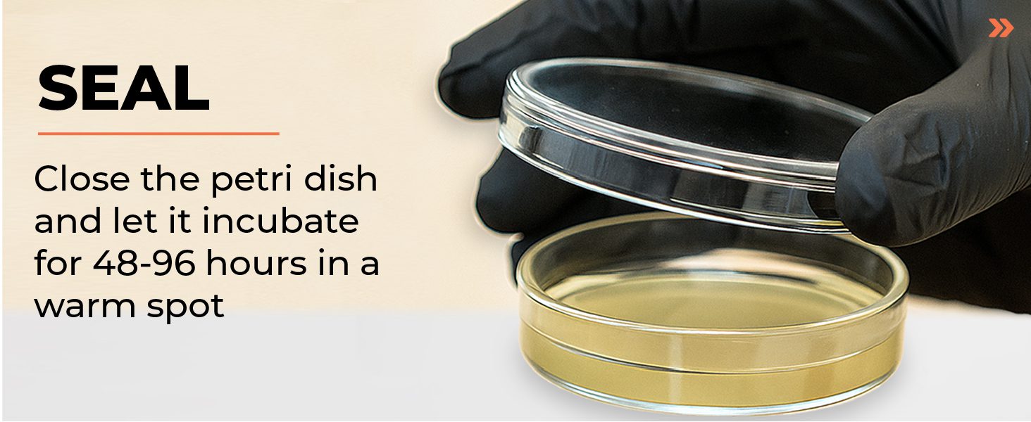 After sealing your petri dishes, wait 48-96 hours for any mold to grow and become visible.